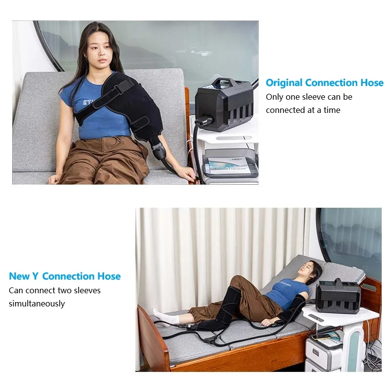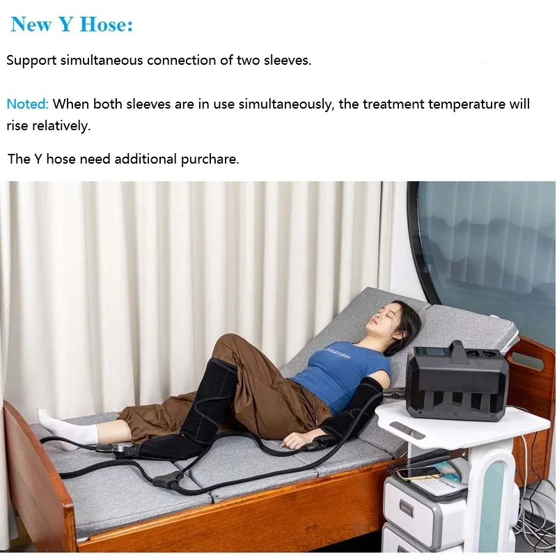 | كمادات باردة + ضغط الهواء | تقليل التورم بعد الجراحة، علاج شامل بعد الالتواءات. |