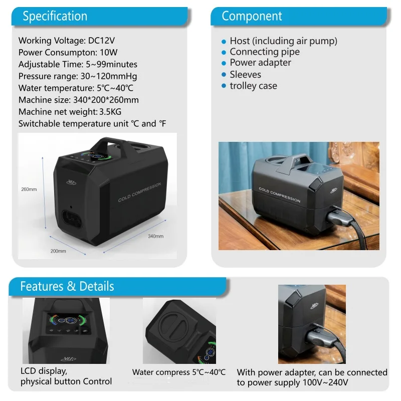 VU-COT02 karštoji ir šalta kompresija terapijos aparatas yra aukščiausios kokybės fizinės reabilitacijos įranga, kurioje integruoti šaltosios ir karštosios kompresijos bei oro slėgio masažas. Ji specialiai sukuriama sportininkų atsigavimui, pooperacinei priežiūrai ir kasdieniam skausmo valdymui.