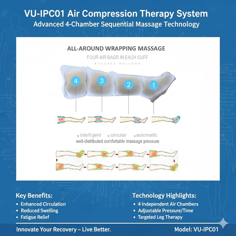 Pozbądź się dolegliwości mięśniowych i uczucia ciężkości w nogach, a zyskaj lekkość i wigor. Wtyczkowe buty do masażu pneumatycznego VU-IPC01 łączą technologię profesjonalnej rehabilitacji z inteligentnym projektem, zapewniając głęboką i precyzyjną regenerację nóg.