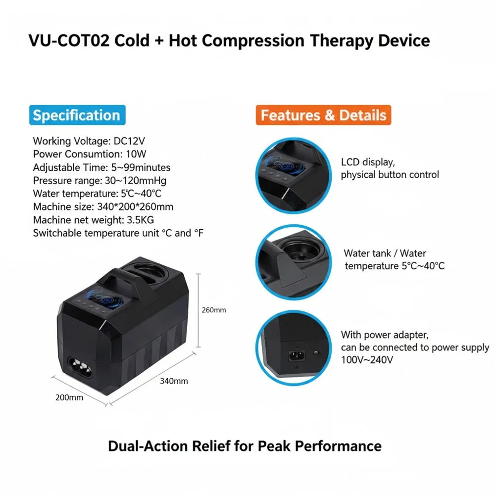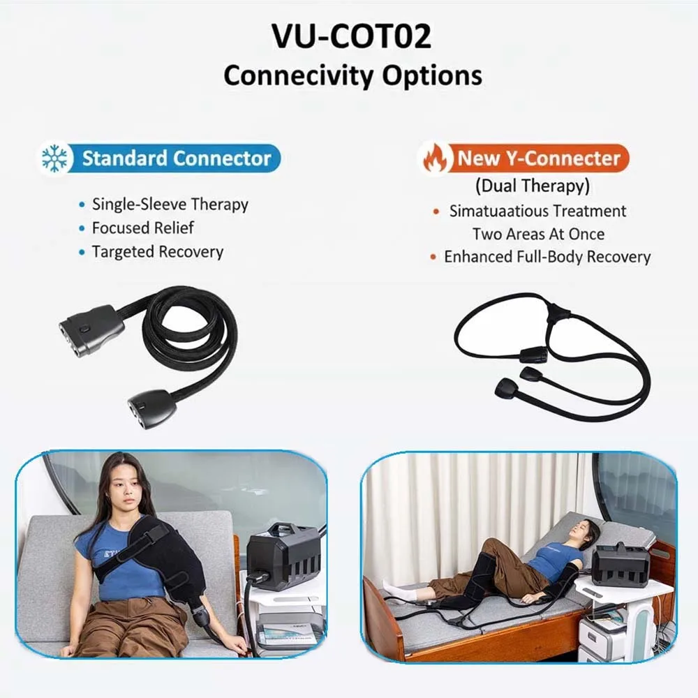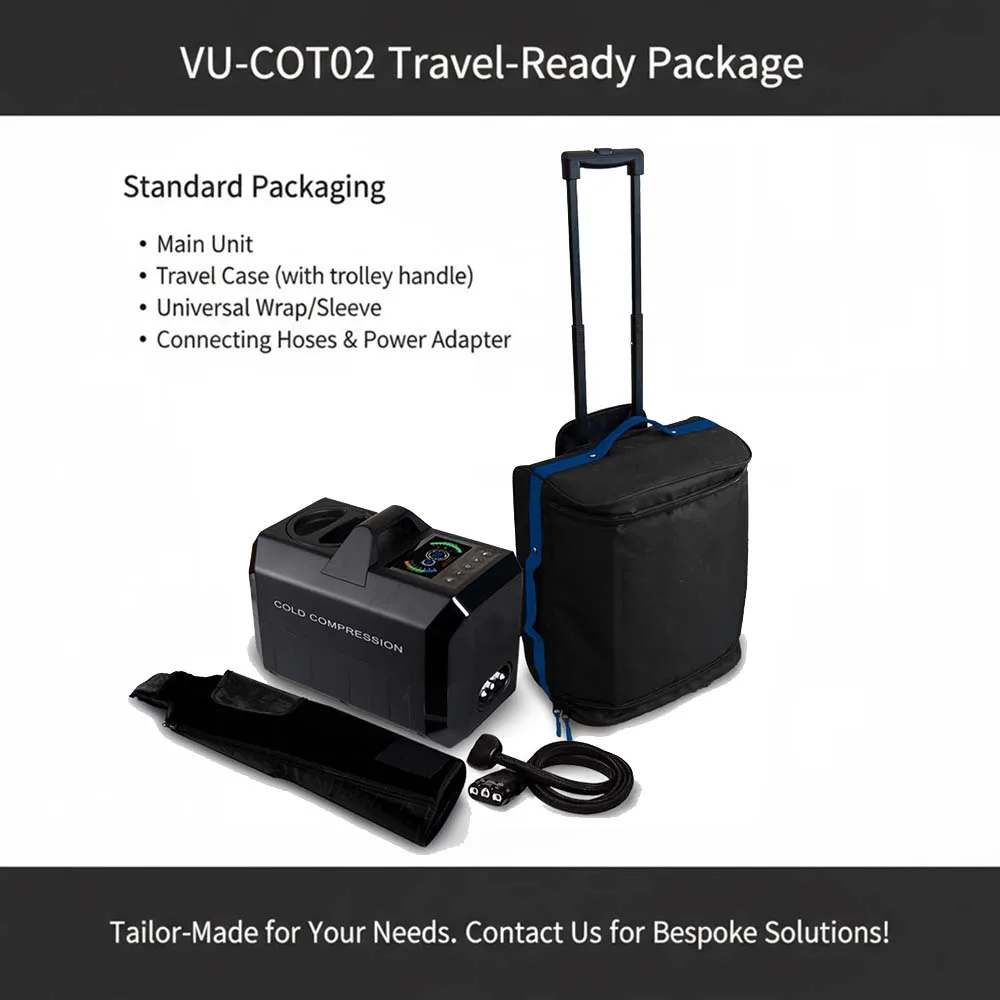 устройство для крио-компрессионной терапии VU-COT02 интегрирует криотерапию, тепловую терапию и компрессию с помощью воздушного давления, обеспечивая профессиональный уровень реабилитации за счёт сочетания трёх эффектов. Будь то острая травма после физической нагрузки или хроническая боль в повседневной жизни — устройство быстро снимает отёчность и боль, расслабляет мышцы и улучшает кровообращение. Его портативная конструкция с ручкой и индивидуально подобранный защитный рукав позволяют эффективно восстанавливаться в любое время и в любом месте. Мы также предлагаем комплексные индивидуальные решения для медицинских учреждений, спортивных команд и коммерческих организаций.