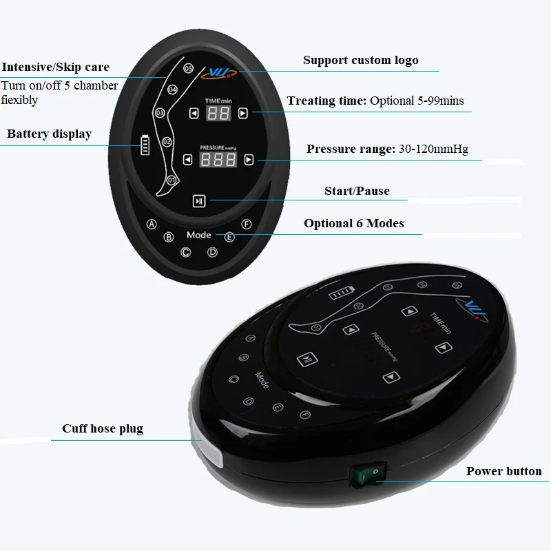 Hava kompresyon Terapisi cihaz, yüksek kapasiteli 6000mAh'lik dahili lityum pil ile donatılmıştır ve uzun süreli kablosuz kullanımını destekler; her yerde, her an rahat bakımın keyfini çıkarmanızı sağlar.